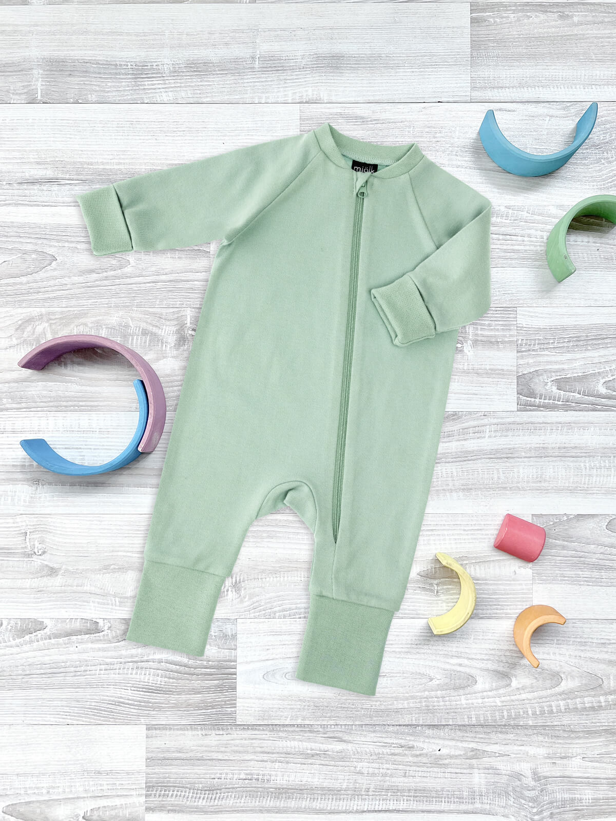 Комбинезон Mjölk [мьёльк] Sleep and Play — классический комбинезон на молнии с открытой ножкой и рукавом реглан, выполненный из плотного и очень мягкого 100% хлопка.