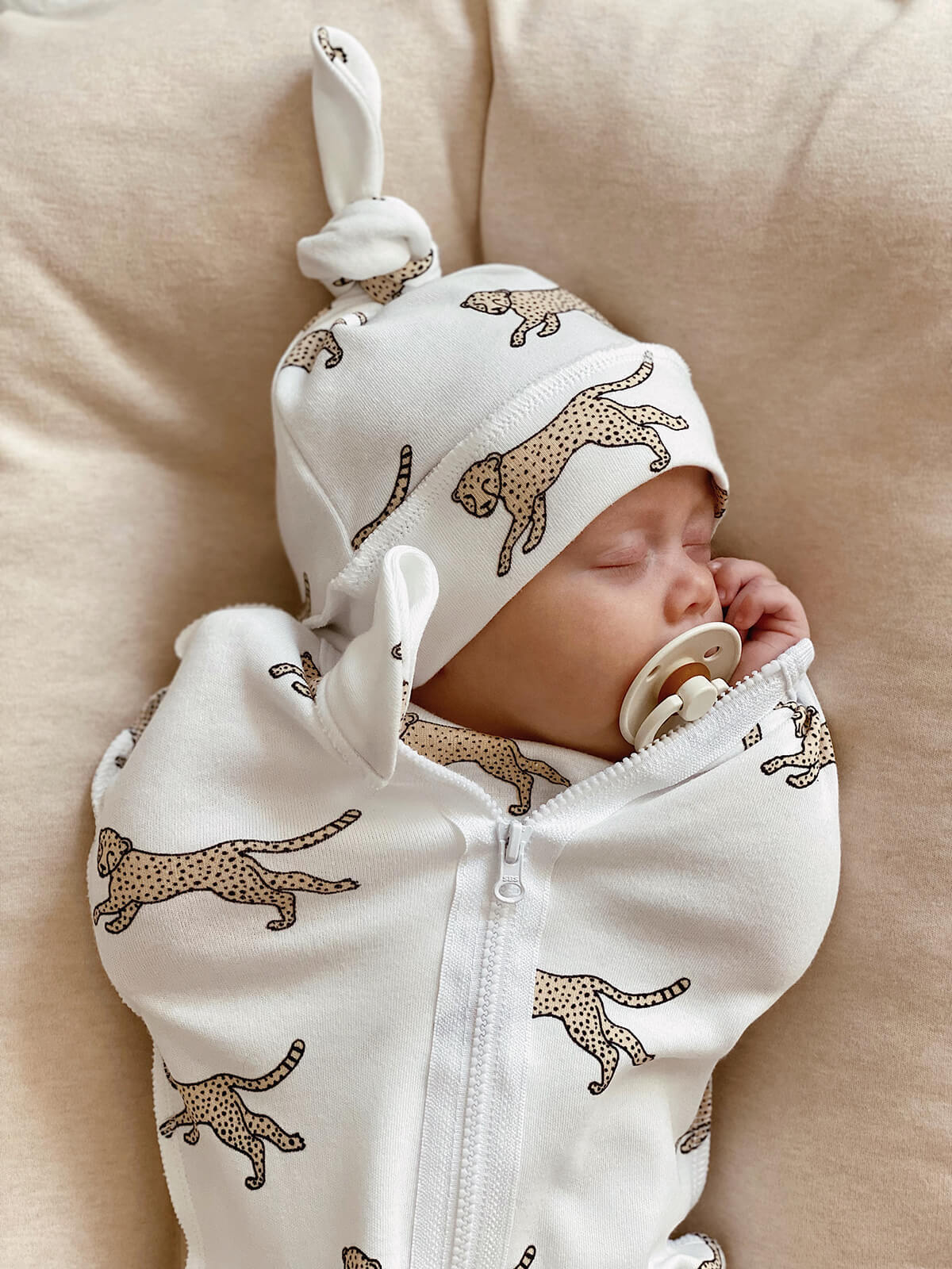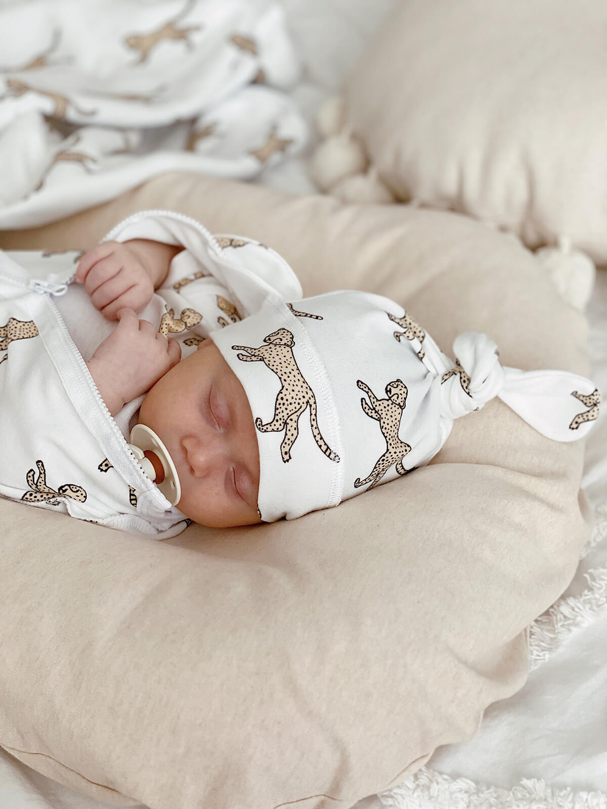 Шапочка с узелком mjölk [мьёльк] выполнена их трикотажного хлопка, который подходит нежной коже новорожденного, не вызывает аллергии и дарит малышу комфорт.
