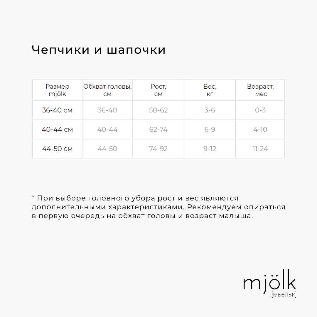 Вы можете самостоятельно регулировать глубину шапочки. Подросшему малышу можно носить её без отворота, а также перевязывать узелок. Выбрать правильный размер поможет обхват головы ребёнка.