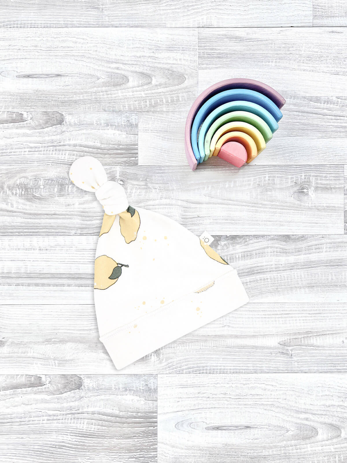 Шапочка с узелком mjölk [мьёльк] выполнена их трикотажного хлопка, который подходит нежной коже новорожденного, не вызывает аллергии и дарит малышу комфорт.