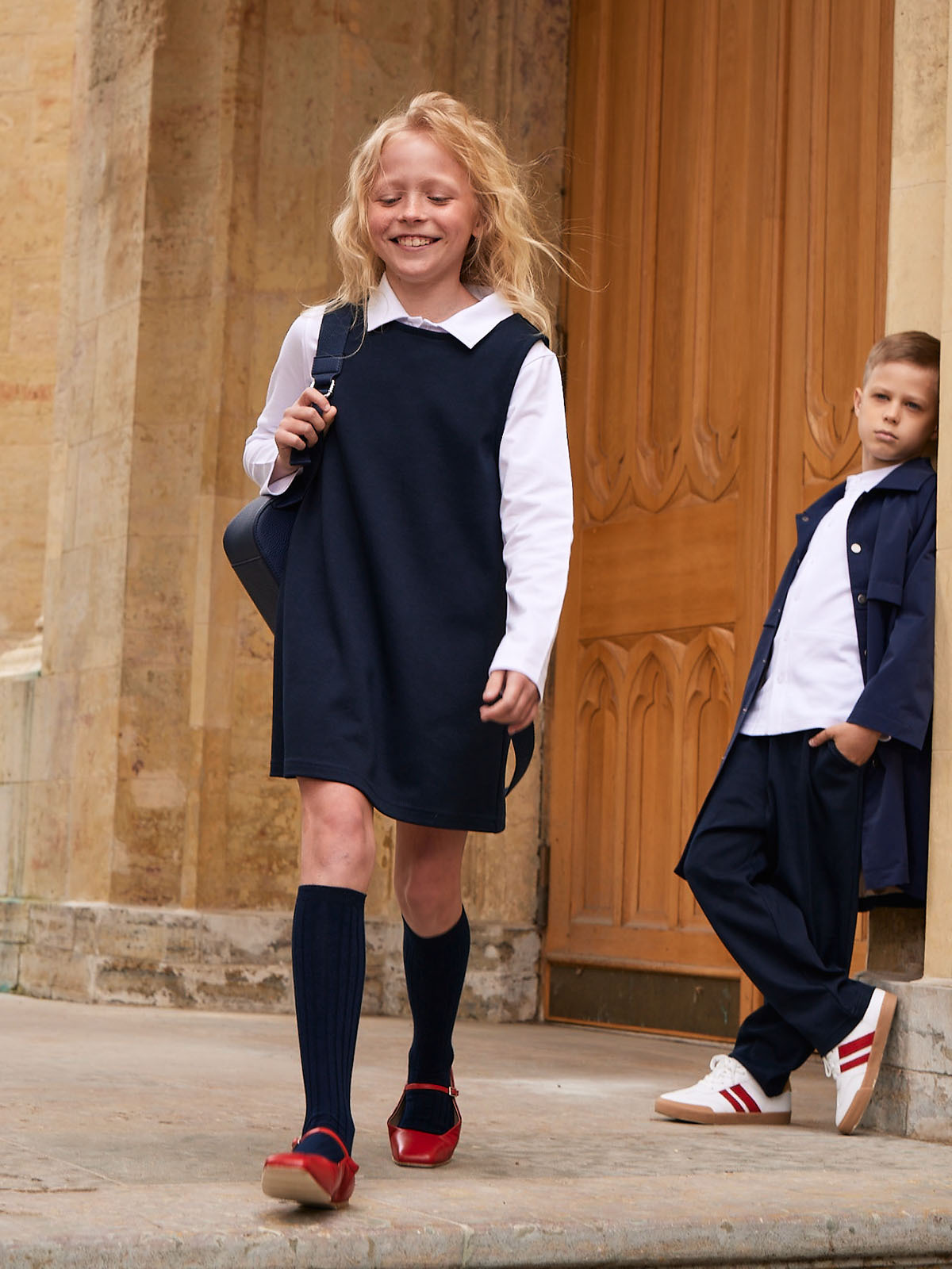 Отсутствие каких-либо застёжек и молний делает процесс надевания быстрым и удобным даже для младших школьников. Благодаря универсальному цвету изделие будет гармонично сочетаться с любой блузкой, рубашкой или футболкой.