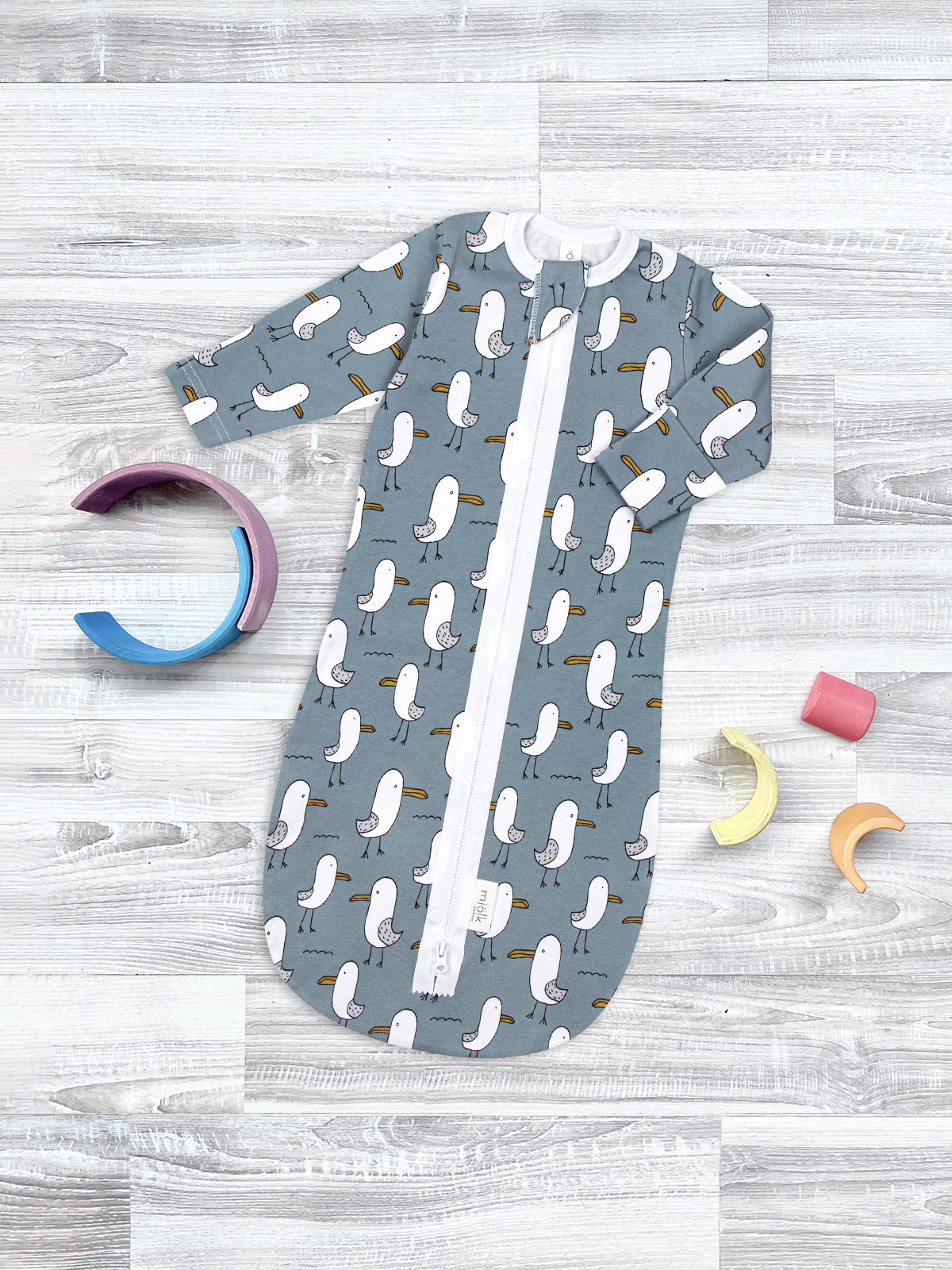 Спальный мешок для малыша — идеальная альтернатива одеялу. Он не сковывает движений новорожденного и не даёт ему раскрыться во сне. Вы легко поменяете подгузник, просто расстегнув молнию снизу вверх.