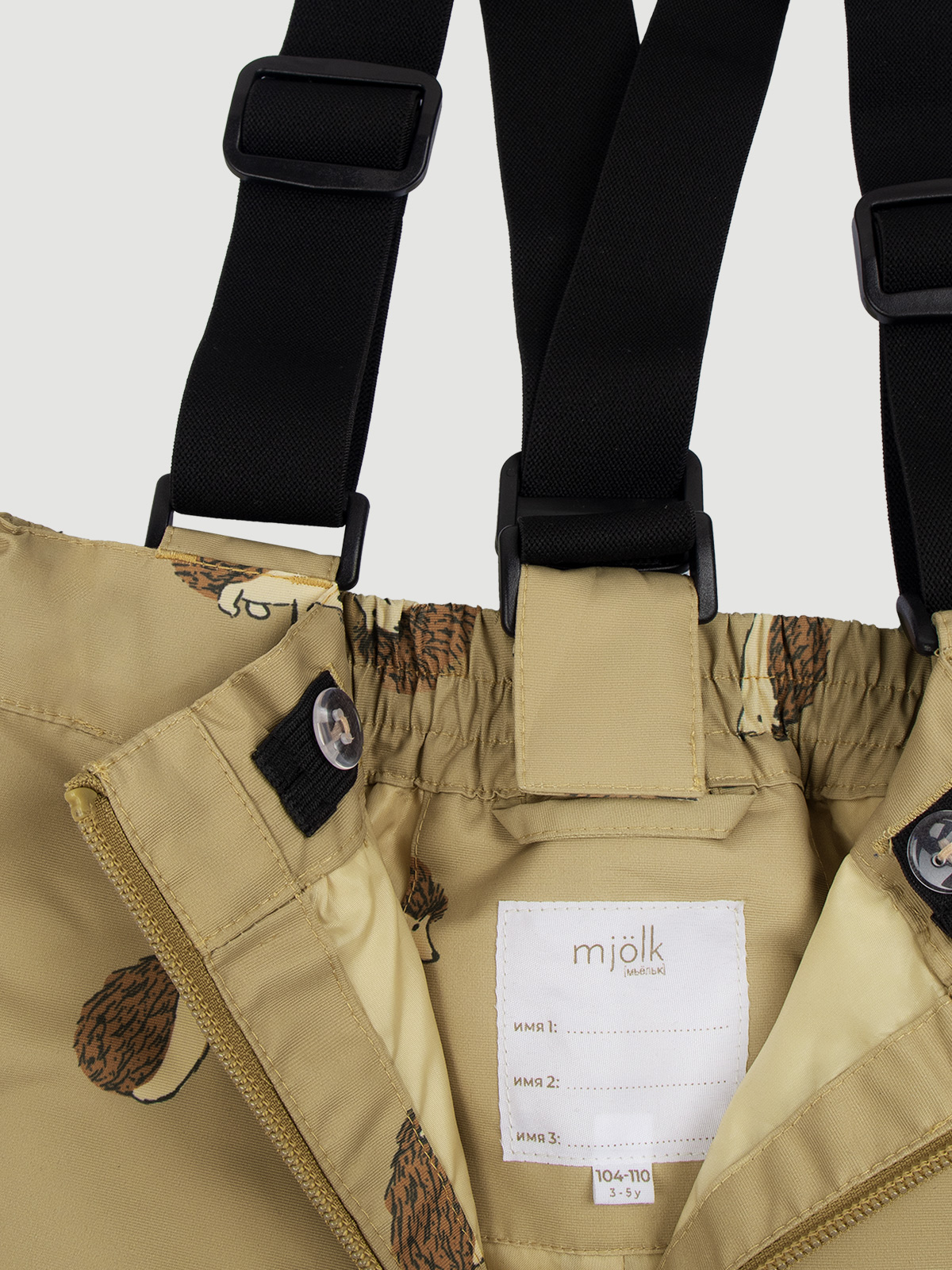 Демисезонные брюки Mjölk [мьёльк] Основные швы брюк проклеены, а сами они изготовлен из водо- и ветронепроницаемой, грязеотталкивающей мембраны. Усиленная задняя часть и область колен обеспечит дополнительную защиту во время активных игр. Гладкая подкладка и удобные резинки помогают комфортному надеванию верхней одежды. Используя изделия с мембраной, стоит придерживаться принципа многослойности: надевать на ребёнка первый слой (лонгсливы, легинсы, термобелье).
