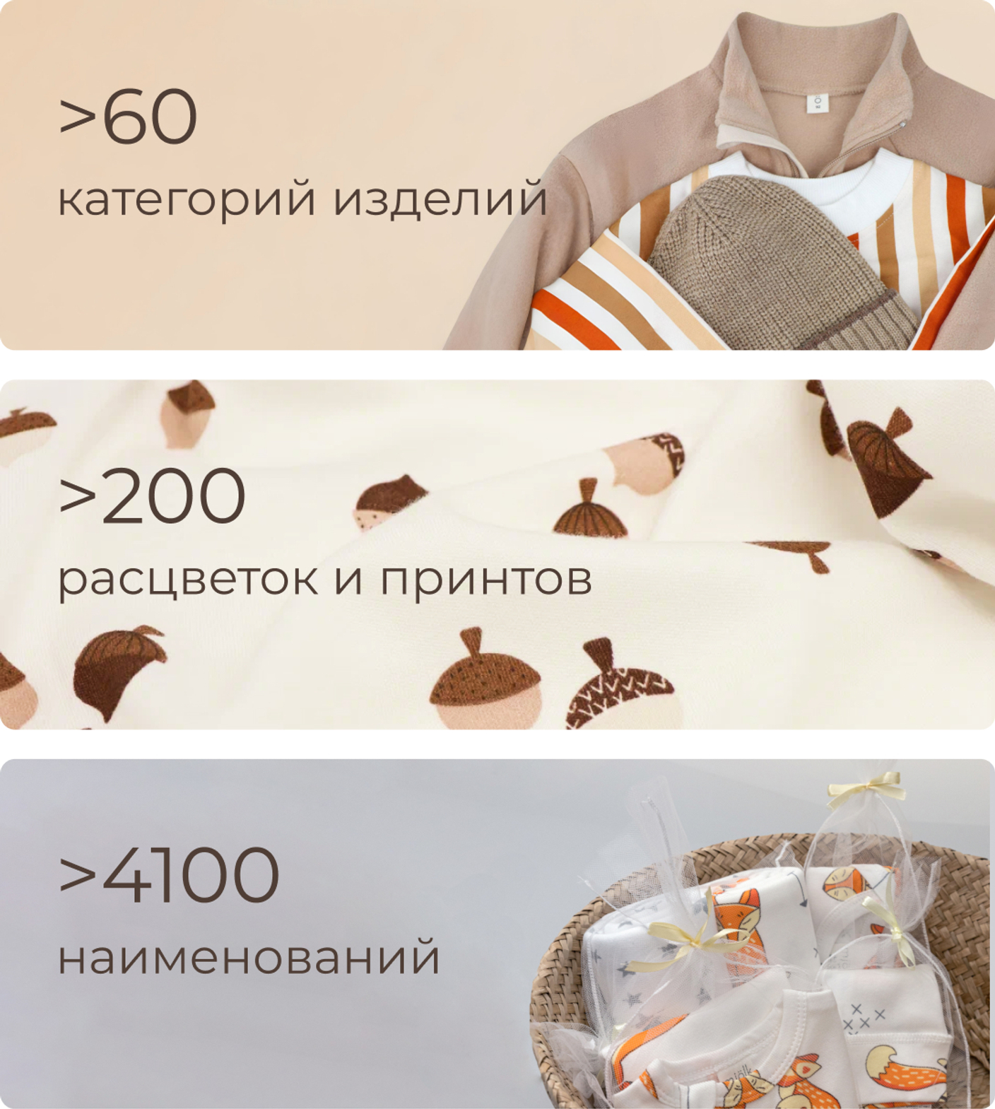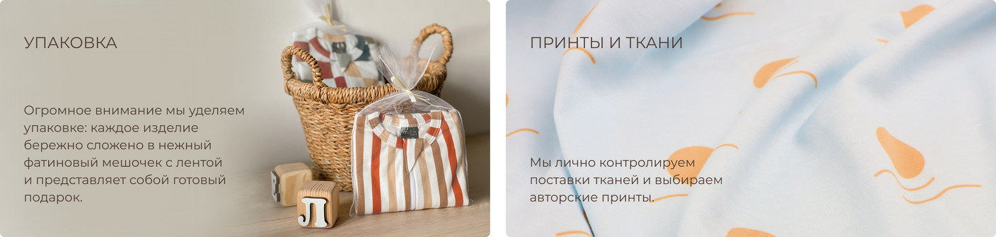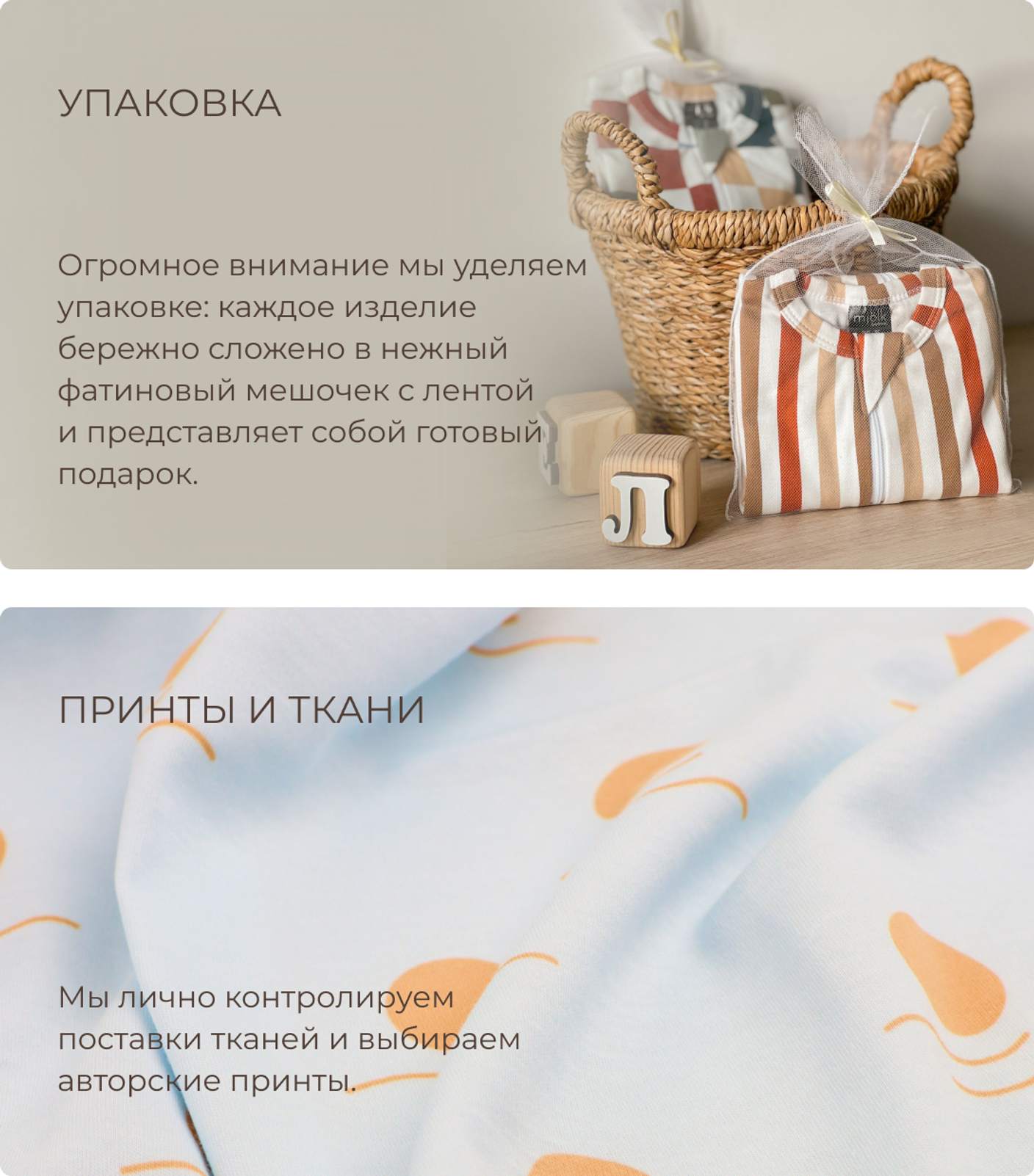 Собственное производство в Санкт-Петербурге и сильный сектор ОТК позволяют нам создавать изделия высокого качества и развивать идеи экологичного потребления, когда одна вещь может прослужить нескольким малышам.
